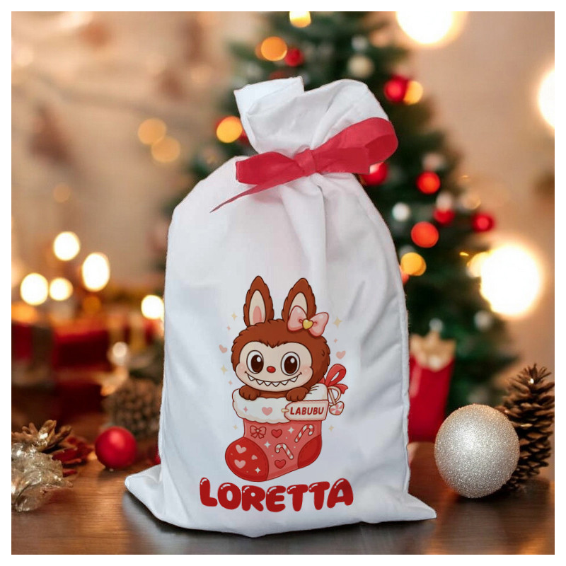 - Labubu mikulás zokniban mintával, kedves, szerethető dizájnnal