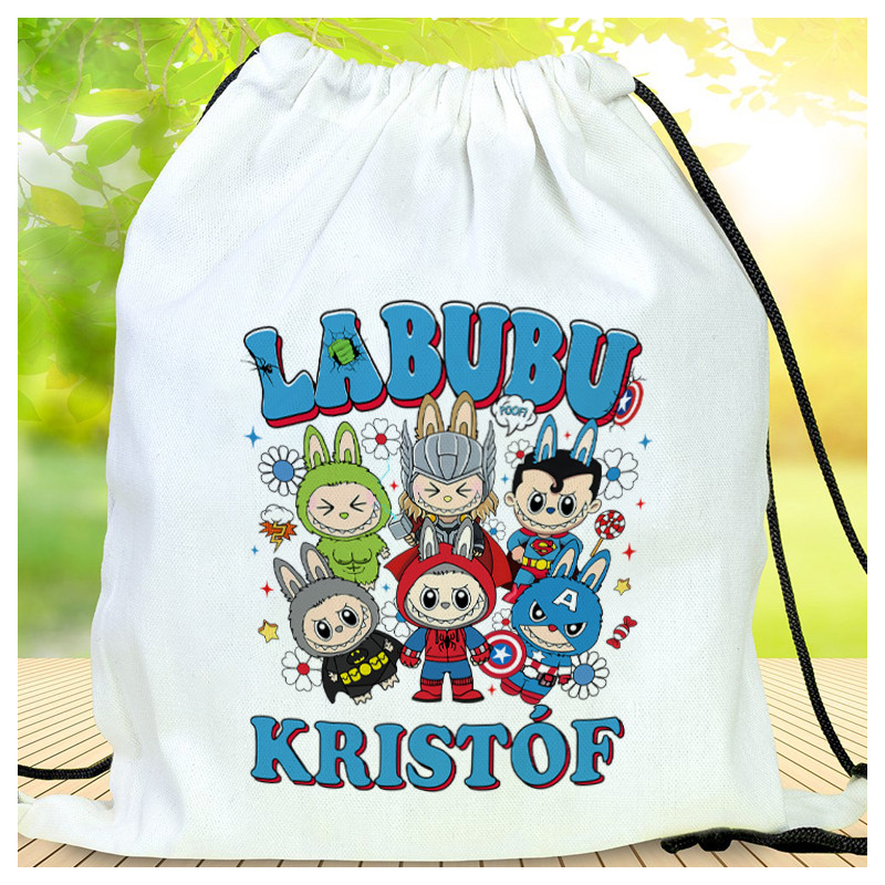 - Egyedi Labubu szuperhős grafika, amely garantáltan felkelti a gyerek figyelmét