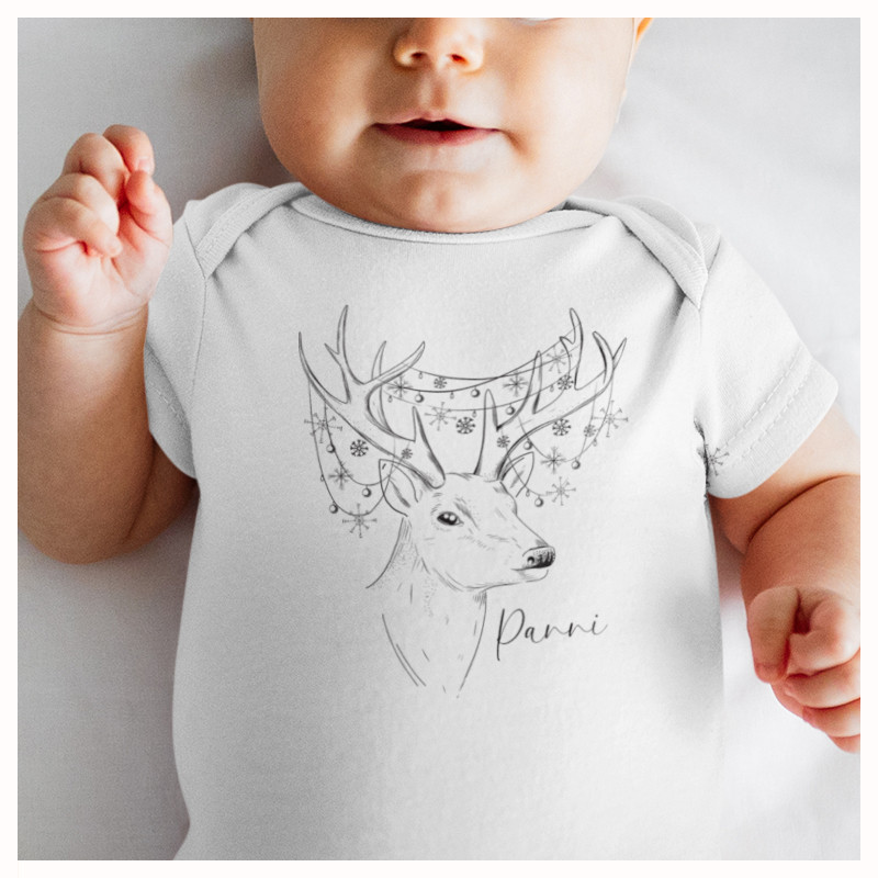 Készülj stílusosan az ünnepekre ezzel a különleges karácsonyi csodaszarvas baba bodyval / gyerek pólóval! A letisztultan elegáns, egyedi minta igazi ünnepi hangulatot teremt, így nemcsak ajándéknak tökéletes, hanem karácsonyi családi fotózásra is ideális választás.