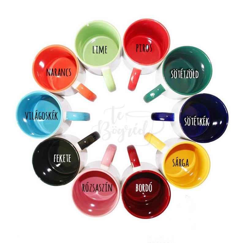 A  mintát kérheted színes belsejű- fülű bögrére is, /lásd a képek között/ - ennek kiválasztásában nyújtunk egy kis segítséget, ugyanis csak olyan színek jelennek meg a lenyíló fülben, amelyek harmonizálnak az adott mintával.