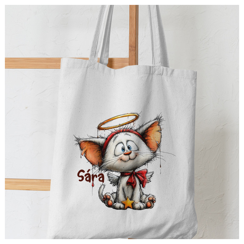 A macskás szatyor kérhető névvel vagy név nélkül, így lehet belőle egyedi, személyes meglepetés is. Elég a Megjegyzés rovatba beírnod a kívánt nevet, és mi rávarázsoljuk a táskára.
