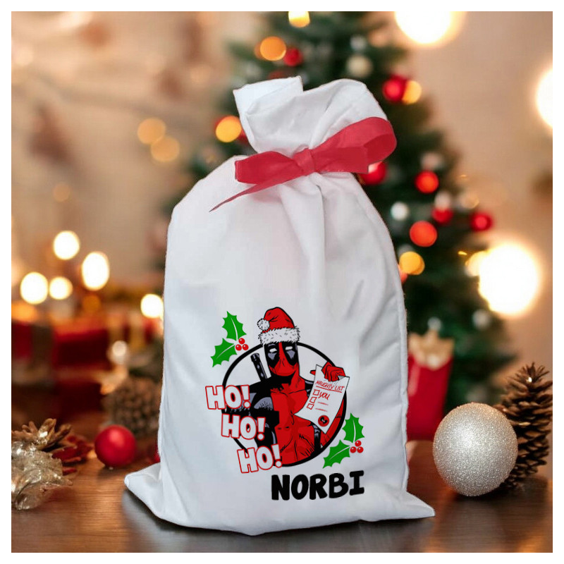 Menő Deadpool mikizsák névvel, 20×30 cm-es méretben. Egyedi névreszóló mikulászsák, ami garantáltan emlékezetes ajándék!
