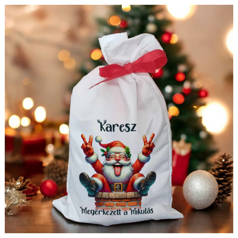 Humoros mintájú, névre szóló mikulászsák 20×30 cm-es méretben. Vicces, egyedi mikizsák apukáknak, haveroknak, rockereknek vagy gyereklelkű felnőtteknek.